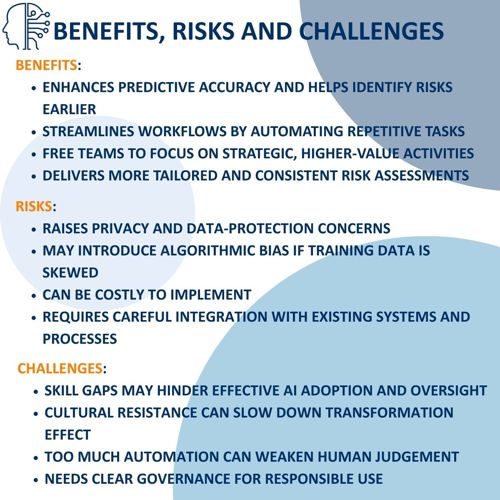 Benefits, risks and challenges of applying AI to risk management