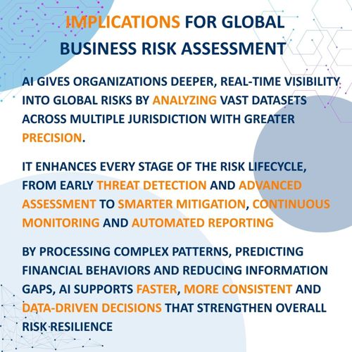 The use of AI in global business risk assessment enables organizations to gain a deeper and more granular understanding of their exposure. Access to real‑time information from multiple jurisdictions makes it possible to analyze business risk with greater precision than traditional models allow.