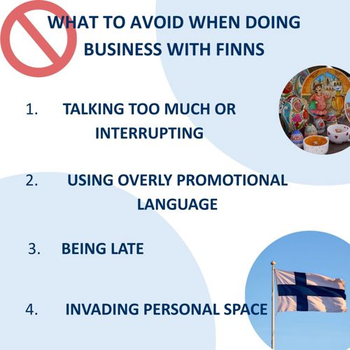 - Talking too much or interrupting: Finns appreciate concise communication.