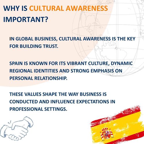Spain is known for its vibrant culture, dynamic regional identities, and strong emphasis on personal relationships. These values shape the way business is conducted and influence expectations in professional settings.