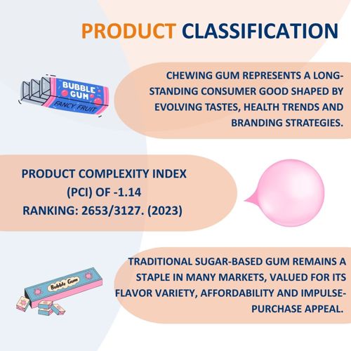 Despite its low complexity, the product continues to perform well thanks to strong branding, impulse‑driven purchasing, and cultural familiarity. Looking ahead, shifts toward natural ingredients and more sustainable gum bases may gradually reshape this traditional confectionery category.