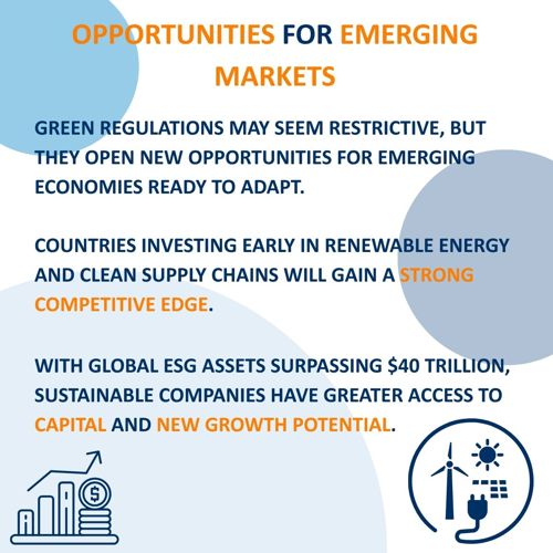 While green regulations may appear restrictive, they also represent a major opportunity for emerging economies ready to adapt.