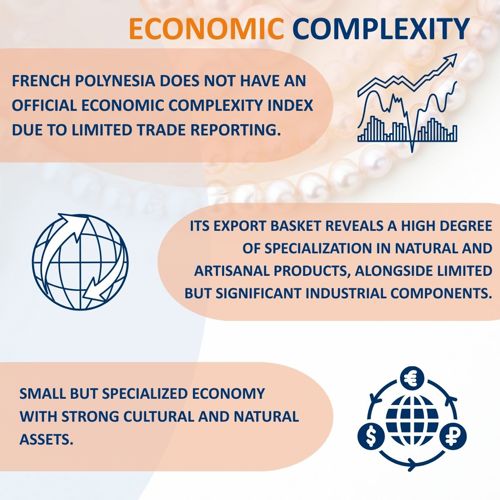 French Polynesia does not have an official Economic Complexity Index (ECI) score. However, its export basket reveals a high degree of specialization in natural and artisanal products, most notably pearls, alongside limited but significant industrial components such as aircraft parts and gas turbines. This combination reflects a small but specialized economy with strong cultural and natural assets.