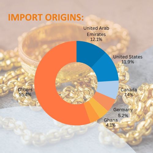 Although Switzerland exports large quantities of gold, it imports even more, due to its refining‑driven business model. This slight trade deficit is typical of countries operating as processing centers rather than end‑consumer markets.