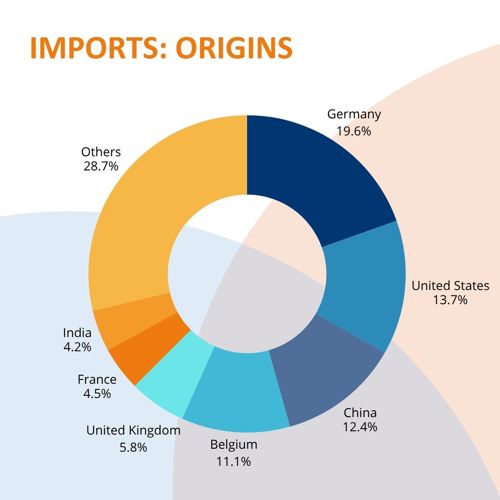 The relationship with Germany remains strategically central, while China and the U.S. account for most high‑tech and industrial imports.