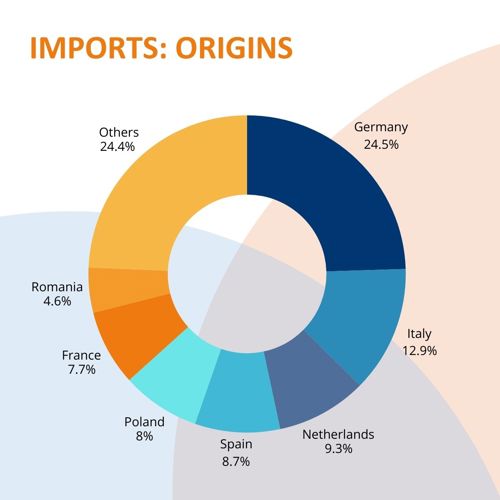 The most common origins of the imports of San Marino are: