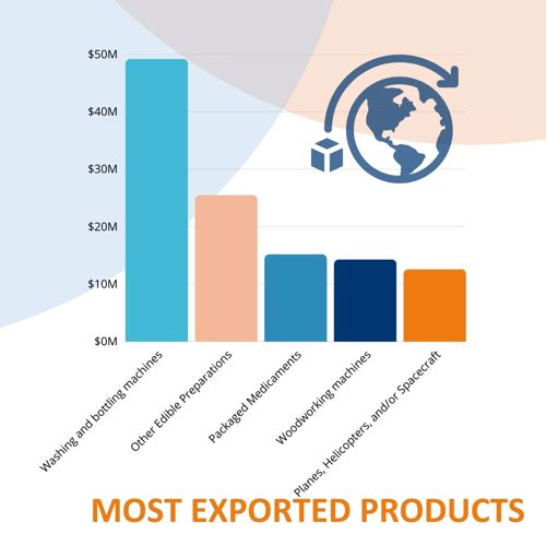 - 182nd in terms of total exports, valued at $224M out of 226 countries