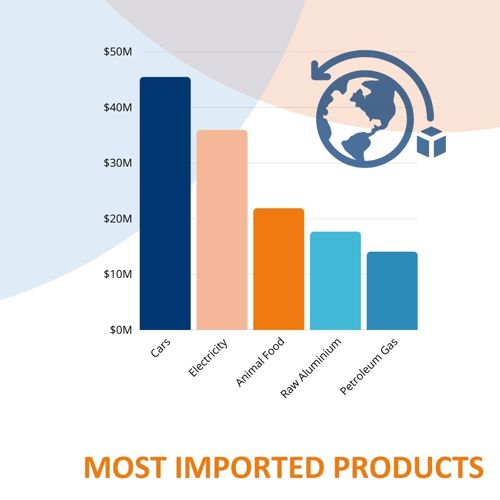 - 199th in terms of total imports, worth $389M out of 226 countries