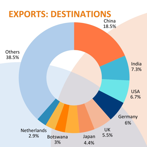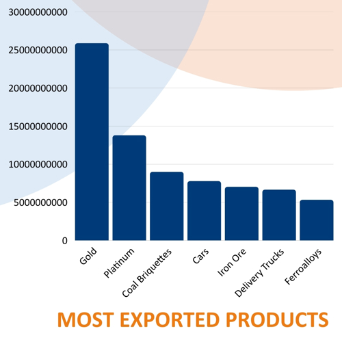 In 2025 it was estimated that the principal products that were exported from South Africa were