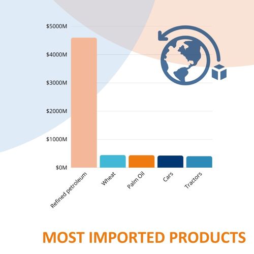 In 2023, Tanzania imported a total of $15.5B, ranking 92nd globally. Main imports included: