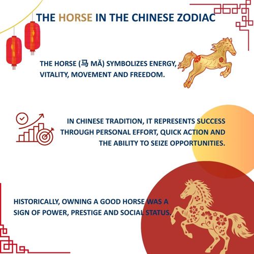The Horse (马 mǎ) symbolizes energy and vitality, movement and change, independence and a free spirit. In Chinese tradition, the horse is associated with success achieved through personal effort, quick action, and the ability to seize opportunities. It’s no coincidence that in the past, owning good horses was a sign of power and prestige.