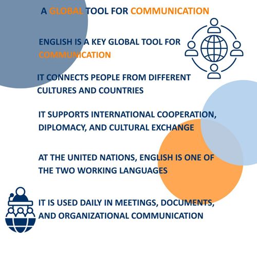 At the United Nations, English is one of the two working languages, alongside French. It is widely used across the organization for meetings, documentation, and communication, underscoring its central role in the advancement of international dialogue.