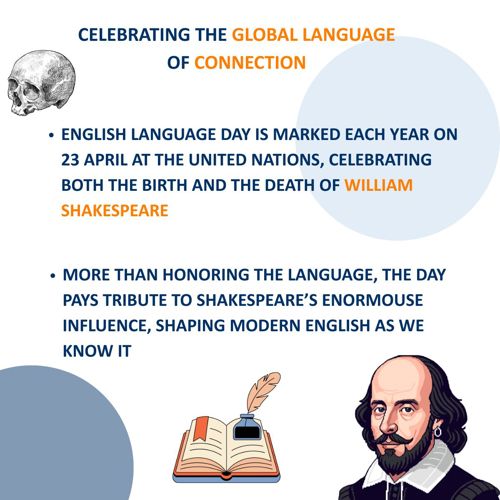 English Language Day is celebrated at the United Nations every year on 23 April, a date traditionally observed as both the birthday and the date of death of William Shakespeare. More than a commemoration of the English language itself, the day is a tribute to one of its greatest contributors: Shakespeare, whose creativity enriched modern English with hundreds of new words and expressions. Terms such as gossip, fashionable, and lonely appeared for the first time in his works, along with idiomatic expressions like break the ice, faint-hearted, and love is blind.