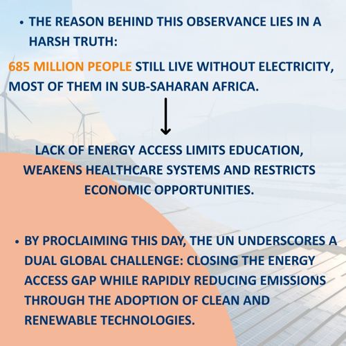 By proclaiming this day, the UN underscores a dual global challenge: closing the energy access gap while rapidly reducing emissions through the adoption of clean and renewable technologies.