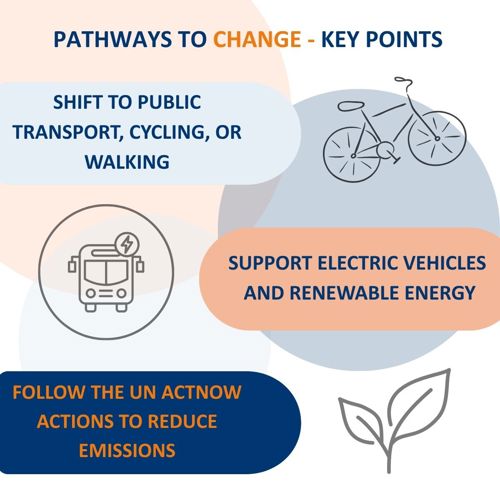 The UN’s ActNow campaign complements these efforts with ten everyday actions for a healthier planet. Walking, biking, or taking public transport is one of the most impactful, but the campaign also highlights other lifestyle changes: saving energy at home, switching to renewable sources, reducing food waste, eating more plant-based meals, repairing and reusing goods, and even making financial choices that support sustainable businesses. Each of these actions reduces emissions and builds momentum for systemic change.